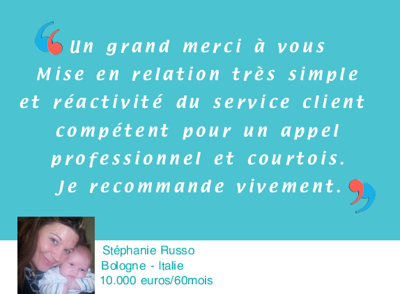 Spécialiste et Leader du crédit entre particuliers en ligne, accrédité en tant qu’Établissement de crédit - Intermédiaire et prestataire de service de prêt aux particuliers, spécialiste de la vente à distance de solutions de prêt d'argent entre particuliers. Avec notre prêt personnel, vous concrétisez vos projets sans justificatifs d'utilisation et sans frais de dossier : achat d'une voiture, travaux, électroménager, décoration, mariage, naissance….